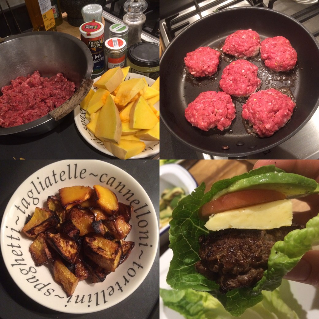 Welcome back y’all! As ever, I’m going to try and bring you something damn healthy which can be made damn cheaply. Today, there’s a simple concept, have a cheat meal or comfort food, whatever you want to term it, but make it yourself at home! Today’s menu doesn’t come much more comforting, here we have homemade jerk burgers & squash chunky fries.