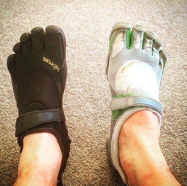 The classic piece of footwear, and one I have consistently used, are the Vibram five finger shoes. I started using Vibrams initially just in the gym when I was doing weight based workouts. With recommendations for doing the squat and dead lift barefoot rife, I noted these as the simple middle ground that would not cause offence quite like my bare sweat smelling plates of meat likely could and would.