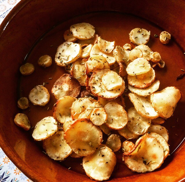 So today’s recipe is a simple one. A tasty and more nutritionally dense option than its cousin the spud, it’s parsnip chips.