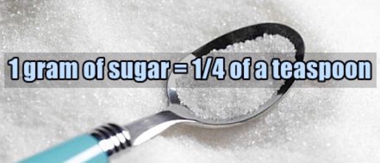Right, so hopefully you’ve had a little scan through. Just to emphasise the point, and this is a big one; a quarter of a teaspoon of sugar equals one gram. So basically a full teaspoon equals 4 grams of sugar.