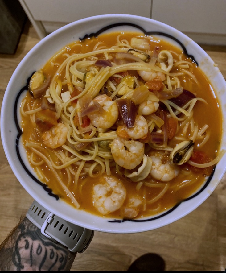 This meal is a super simple choice that is just as good to cook up for someone special as it is to use as part of your performance meal planning. I particularly like it post training as it’s low fat, moderate carbohydrate, protein rich and nutrient dense. The seafood and stock also offers some sodium to support your rehydration.