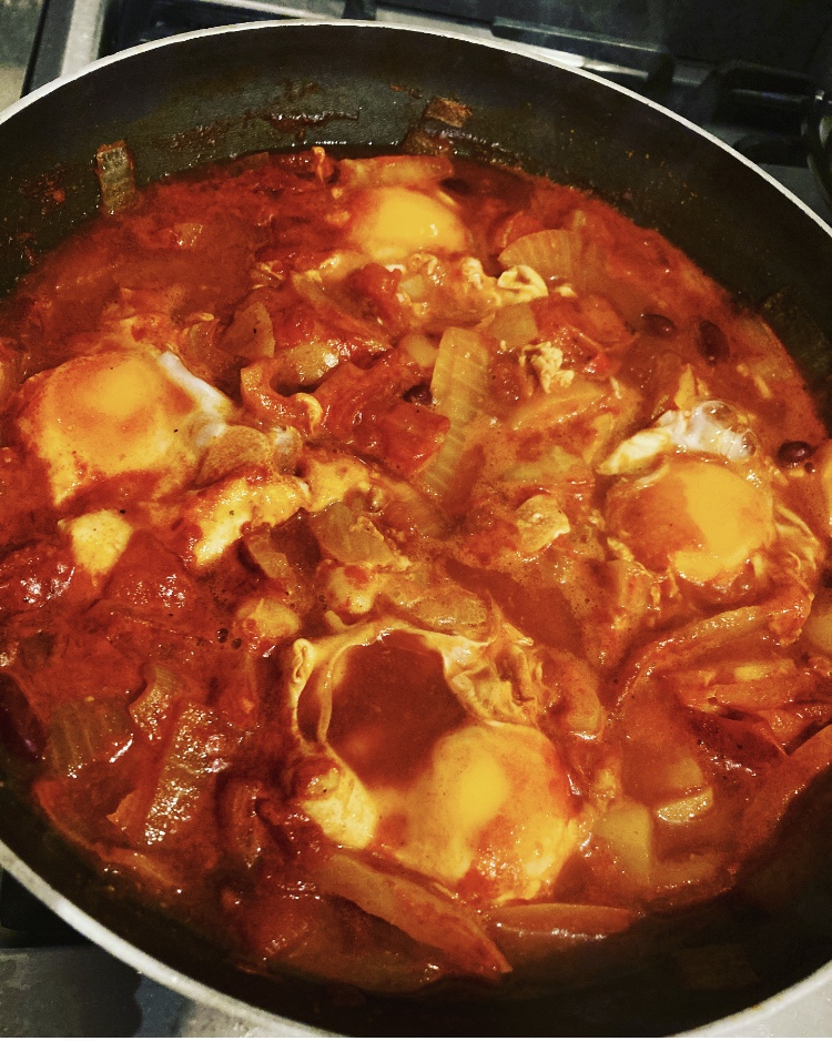 Allow to simmer on the low heat for around 10/15 minutes (or until the egg whites have cooked), serve and enjoy!